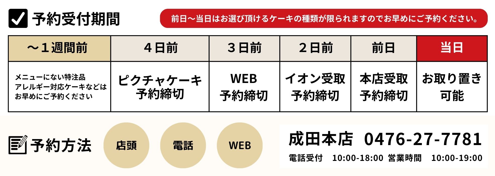 ↓ ↓ ↓ クレマンティーヌ旬のケーや最新情報は𝕏/Instagramでお知らせしています。 ↓ ↓ ↓ 営業時間 成田本店 10:00-19:00 イオンスタイル店 10:00-20:00 そよら成田ニュータウン店 10:00-20:00 年中無休で営業しています。 CONTACT US: 0476 27 7781 CONTACT US VIA EMAIL: INFO@CLEMENTINE.CO.JP